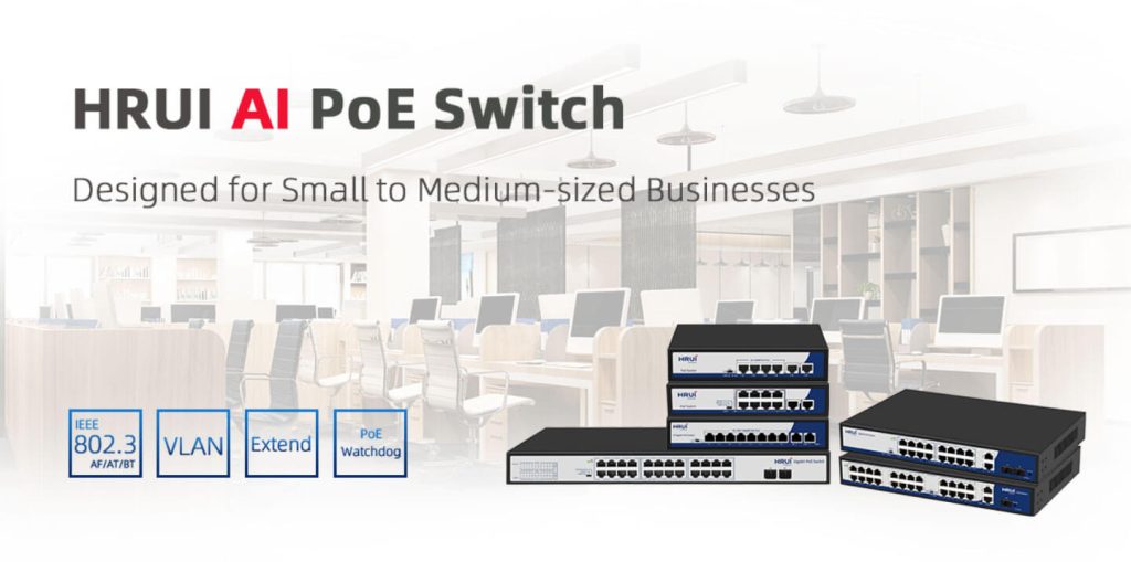 Bộ chuyển mạch HRUI PoE Switch cho phép các thiết bị tương thích hoạt động ở những nơi không có ổ cắm điện hoặc kết nối mạng, giúp các doanh nghiệp tiết kiệm rất nhiều chi phí lắp đặt hệ thống dây điện và mạng trong khi vẫn có các thiết bị IT nhận nguồn PoE hoạt động ở nơi cần thiết.