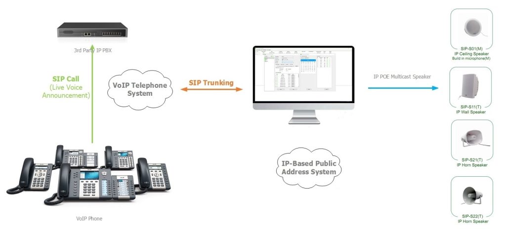 Hệ thống âm thanh IP Audio sử dụng giao thức SIP là giải pháp liên lạc 2 chiều, bạn cũng có thể dễ dàng lắp đặt thêm điện thoại IP chuẩn SIP để liên lạc nội bộ. Với âm thanh IP Audio, việc tích hợp điện thoại VoIP trở nên đơn giản hơn và hoạt động trên mạng LAN/WAN thống nhất do chúng sử dụng chung chuẩn SIP.